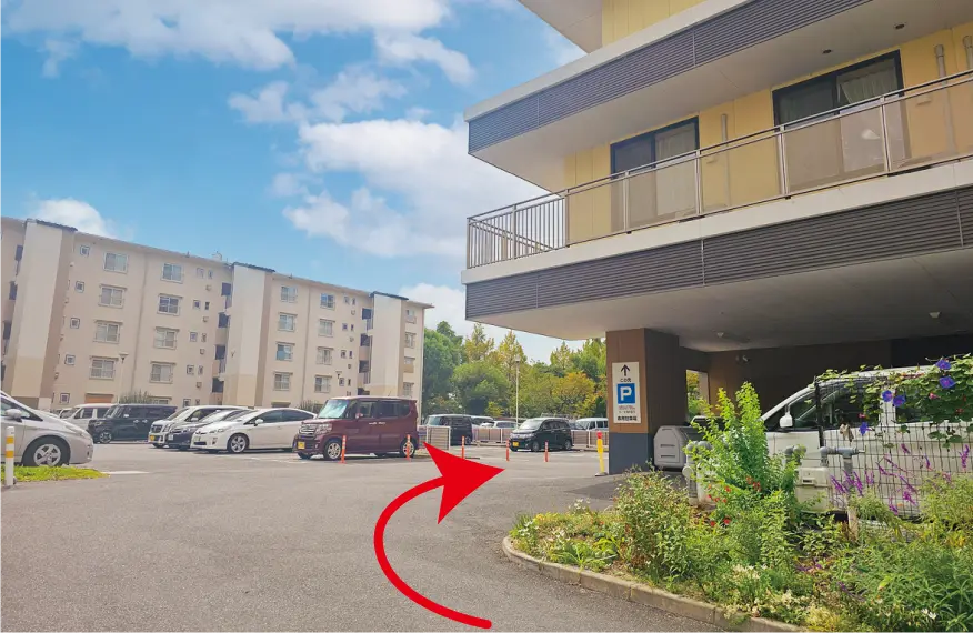 バス停からの行き方はお車の場合と同じです。バス停からは徒歩約5分です。