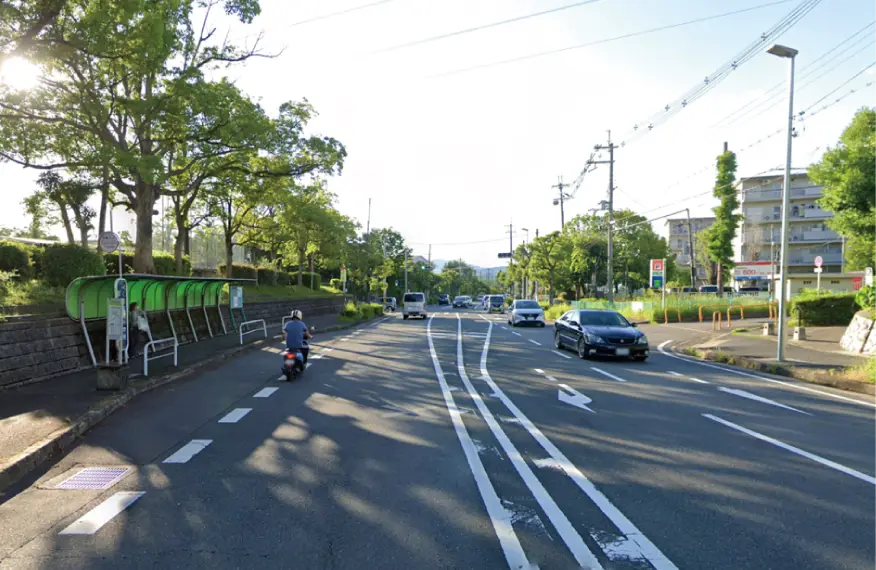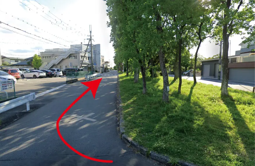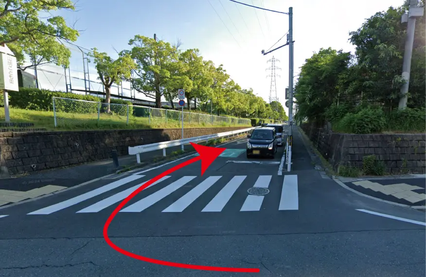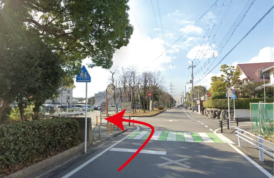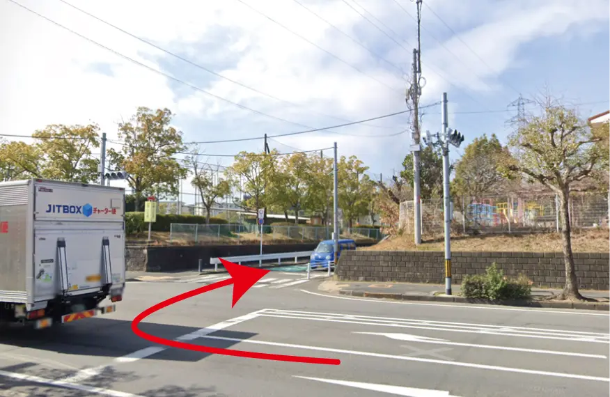 くすのき小学校とくすのき近隣公園の間の道へ右折します。